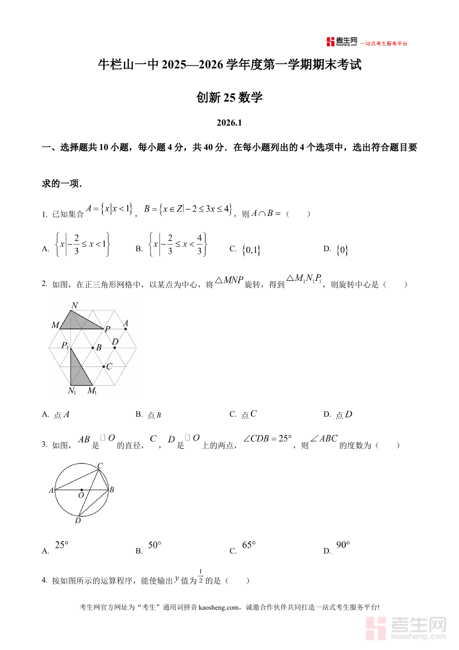 《精品解析:北京市顺义牛栏山第一中学实验学校2025--2026学年上学期九年级数学期末试卷(创新)(原卷版)》是针对北京市顺义区牛栏山第一中学实验学校2025-2026学年上学期九年级数学期末阶段的专项备考资料,精准匹配该学校该学年上学期九年级数学期末的考试场景与需求。