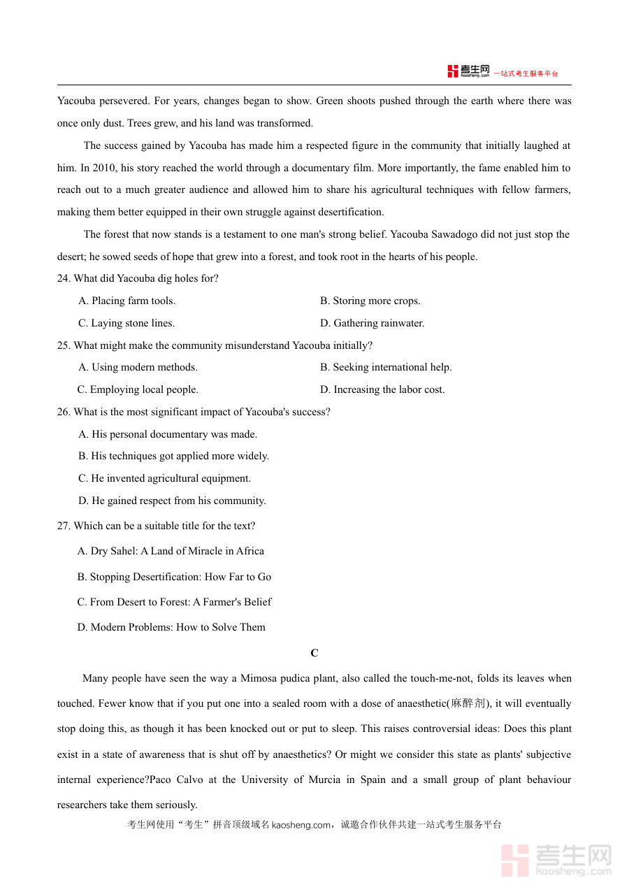 本资料主要适用于2026届贵阳市高三年级学生及从事高三英语教学的教师群体。对于学生而言,借助该资料进行阶段检测能够明确自身学习进度与不足,为后续备考规划提供清晰方向;对于教师而言,则可通过分析试题及考生答题情况,了解区域内考生的共性问题与个性化需求,优化教学重点与方法,助力学生在高考前的关键阶段实现针对性提升。