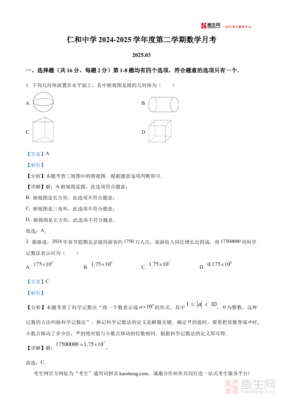 《精品解析:北京市顺义区仁和中学2024-2025学年九年级下学期3月月考数学试题(解析版)》是面向北京市顺义区仁和中学特定学段的数学学科备考资料,精准对应2024-2025学年九年级下学期3月的校级月考场景,以该校当月数学月考真题为核心载体进行深度解析,旨在为相关师生提供契合校情与阶段学习进度的考试辅助资源,帮助使用者更好地对接本次月考的考查方向与要求。