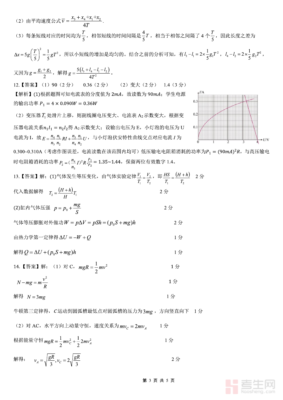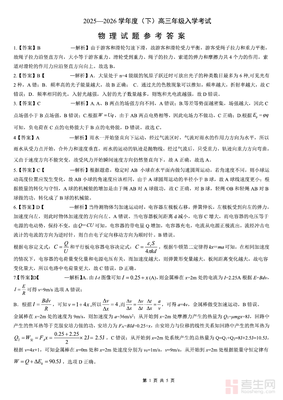 该答案资料可作为学情诊断的关键工具,帮助高三学生快速定位自身在物理学科知识掌握、解题思路及答题技巧等方面的短板与不足;同时也为教师提供了分析学生答题情况的重要支撑,辅助教师调整后续的教学内容与备考规划,确保教学策略与学生实际需求紧密结合,提升整体复习效率。