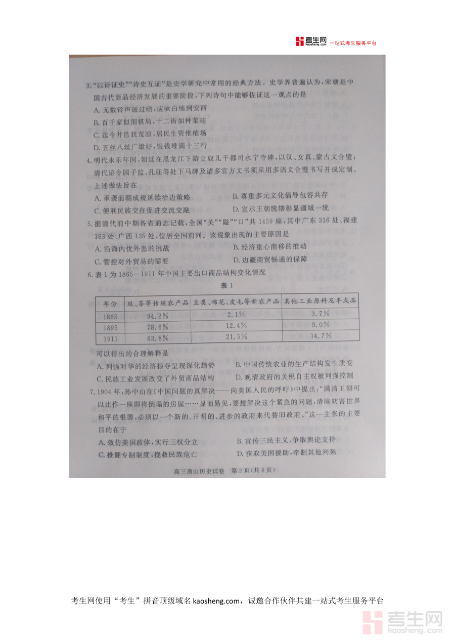 该资料主要用于历史学科的阶段性学情诊断与评估,能够帮助学生及时发现自身在历史知识体系构建、解题思维形成等方面的不足,也为教师提供学生学习状况的具体反馈,以便调整教学重点和方法;同时,它还可作为学校制定整体备考规划的重要参考,辅助优化备考资源分配与进度安排,提升备考工作的针对性和有效性。