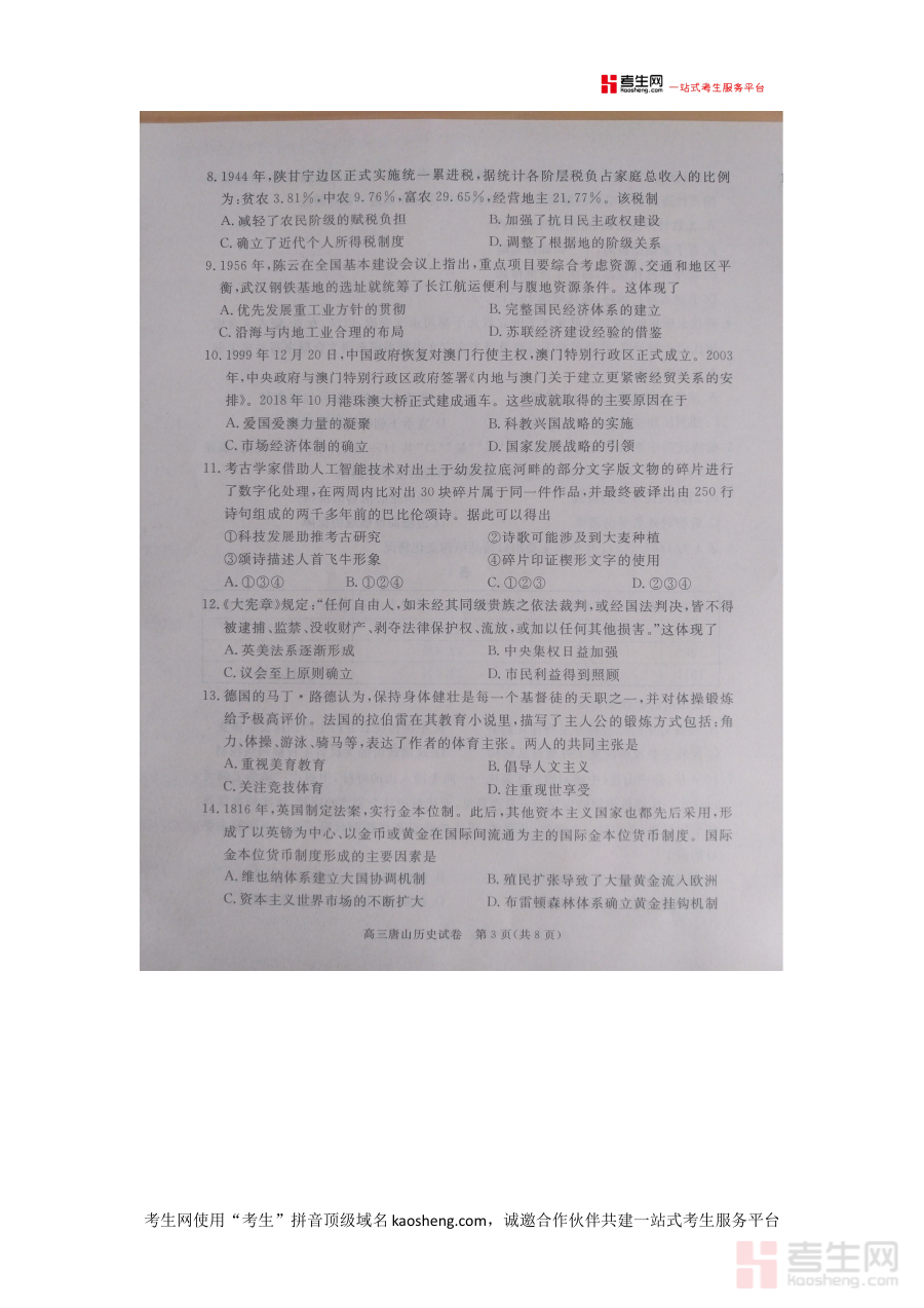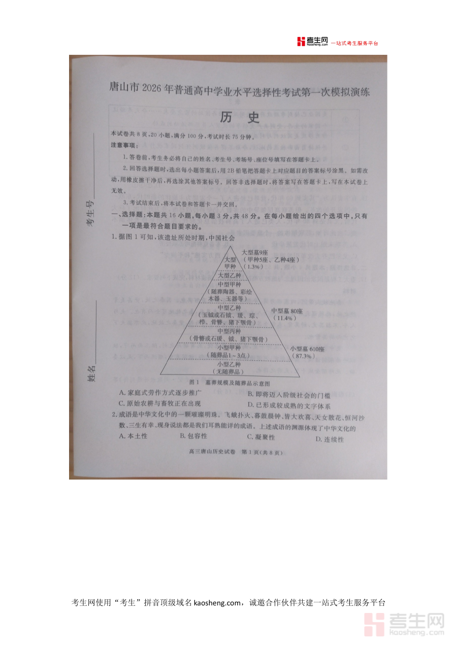 《唐山市2026年普通高中学业水平选择性考试第一次模拟演练历史》是唐山市教育部门针对2026年普通高中学业水平选择性考试推出的历史学科第一次模拟演练资料,属于该考试备考阶段的关键资源之一,其设计与组织紧密围绕该考试的性质和目标展开,为相关群体开展后续备考活动提供明确的方向指引和实践依据。