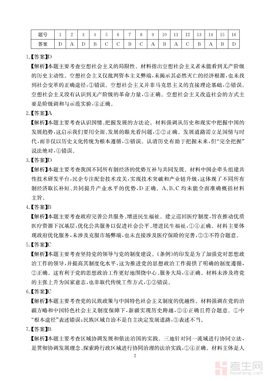 该资料的主要用途包括学情诊断、备考规划与阶段检测辅助。对学生而言,对照答案可快速定位政治学科知识掌握的薄弱环节,明确后续复习重点;对教师来说,借助答案能高效完成试卷批改与成绩分析,精准把握班级整体学习状况,进而调整教学策略与复习计划,提升教学针对性。同时,它也为联盟内各学校的教学质量横向对比提供了客观依据。
