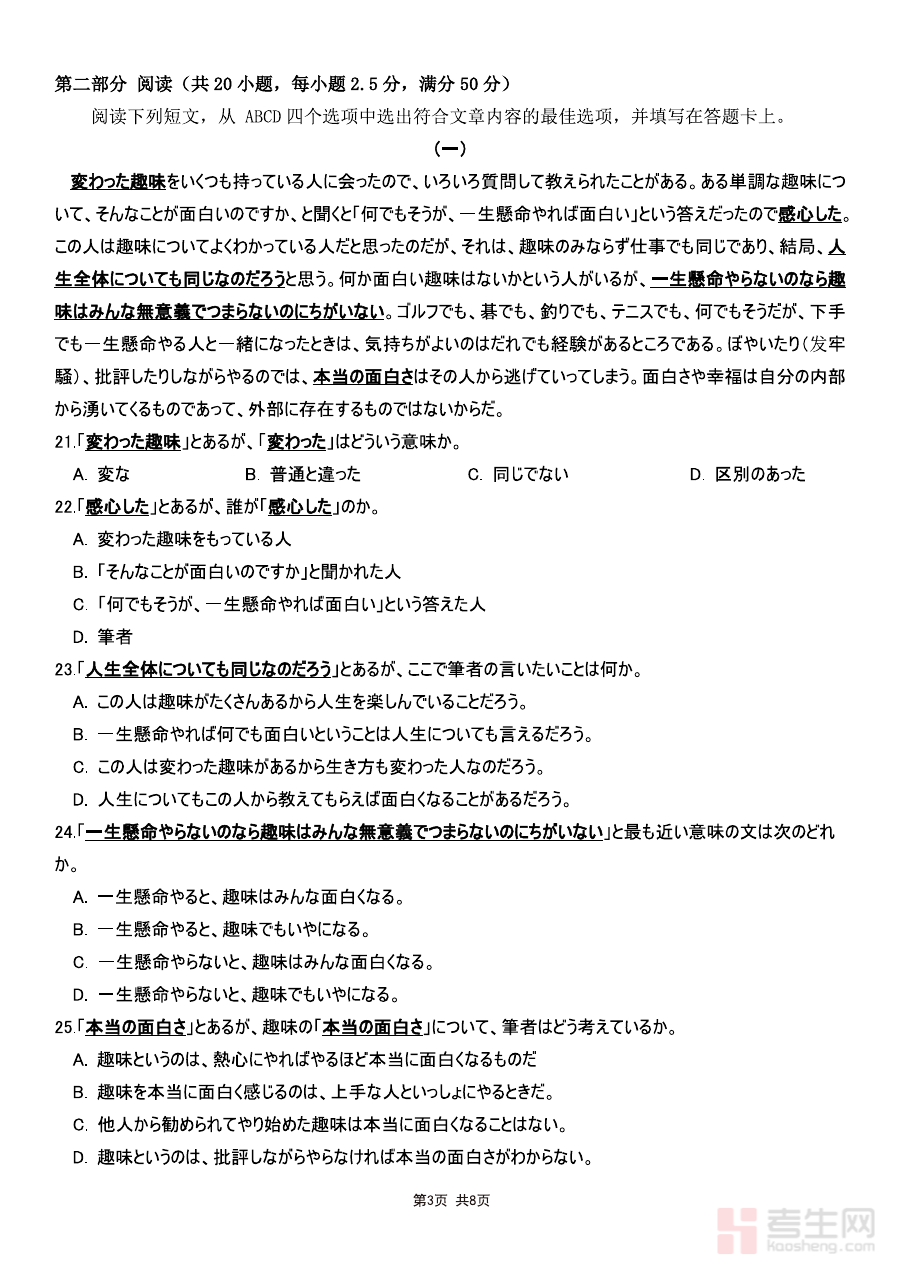 作为开学后的关键阶段性检测工具,该试卷可用于诊断学生在假期后日语知识的巩固程度与综合应用能力,为教师调整教学重点、优化后续备考计划提供客观的数据支撑;同时也能让学生通过测试清晰认识自身在日语学习中的优势与不足,明确下一阶段的复习方向,实现从假期过渡到备考状态的平稳衔接。