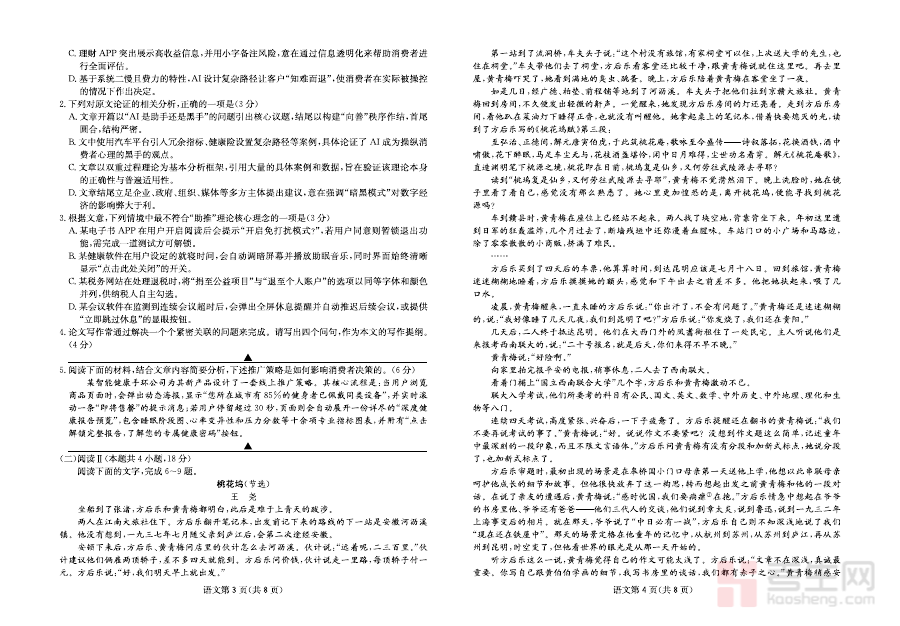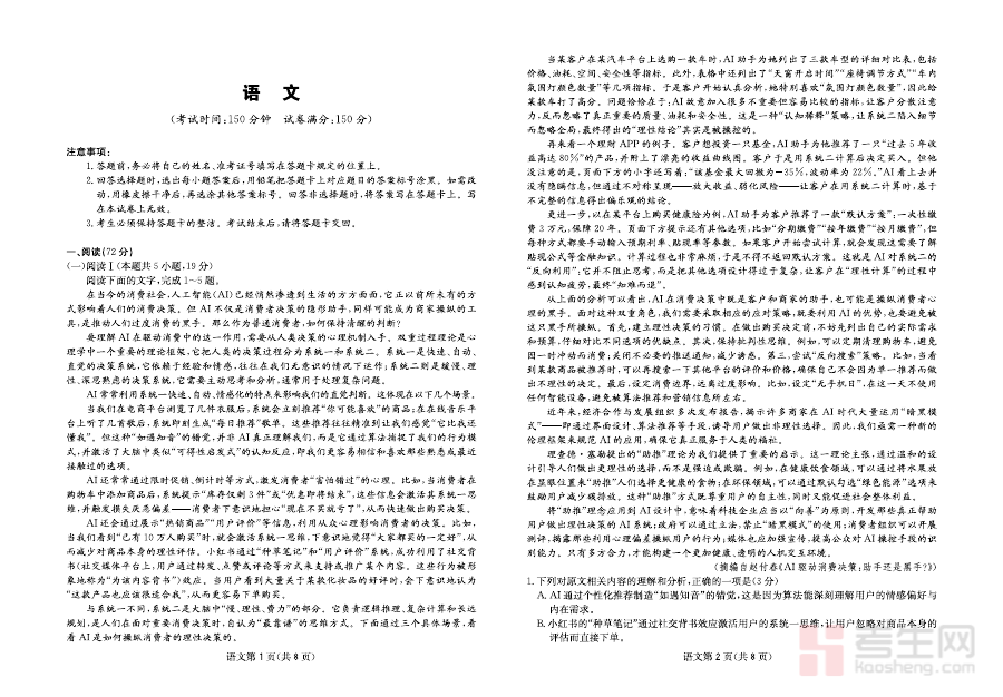《语文试卷-四川省大数据联盟2026届高三3月开学联考》是由四川省大数据联盟针对2026届高三学生组织的开学阶段语文考试资料,属于高三下学期初期的重要阶段性测评工具。该试卷聚焦高三学生开学后的语文学习状态,能够客观反映联盟区域内学生在语文知识掌握、能力应用等方面的阶段性情况,为后续复习提供基础数据支撑与方向参考。