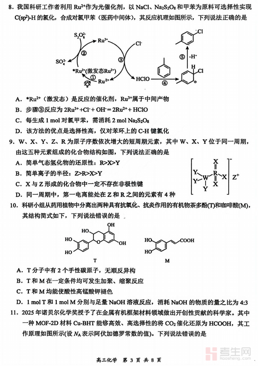 该试卷适用人群为2026届高三学生及高中化学教师。对学生而言参与此次模拟考试可提前熟悉高三化学考试题型结构与答题节奏增强应试适应性;对教师而言利用试卷质量监测功能能更高效制定分层教学方案提升备考指导针对性和有效性。整体来看该试卷在高三化学备考初期具有重要导向价值,有助于师生共同明确阶段目标为后续系统复习和能力提升奠定坚实基础。