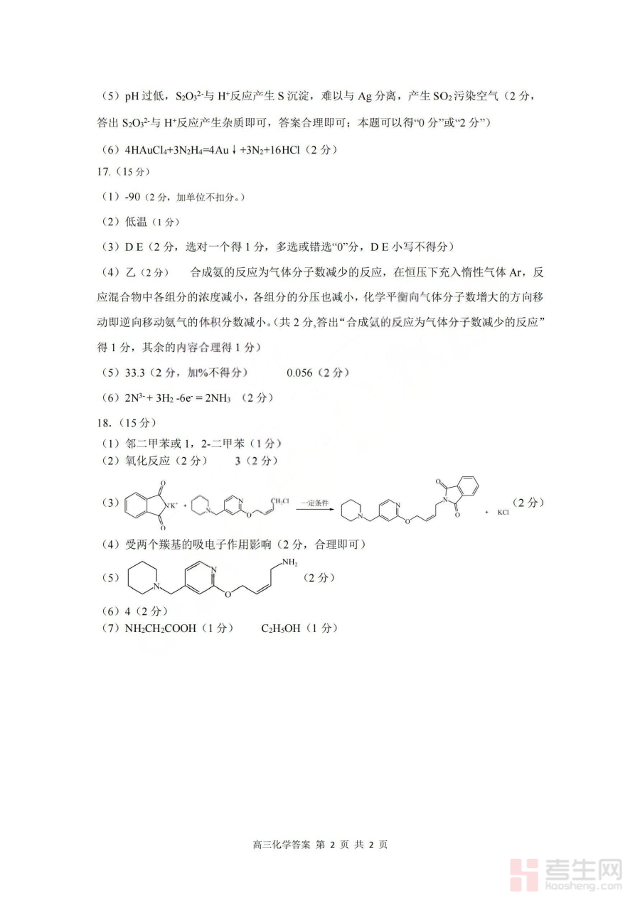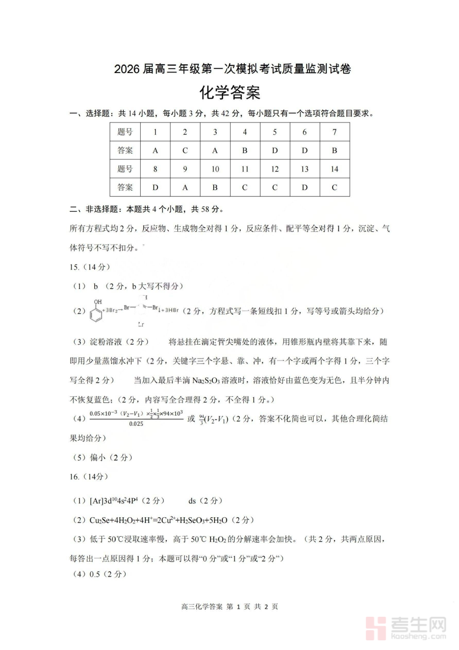 《2026届高三年级第一次模拟考试质量监测试卷 化学答案》是面向2026届高三学生的化学学科配套资料,对应高三年级第一次模拟考试质量监测这一阶段性测评考试类型,为该次考试提供标准的答案参考,是高三化学备考过程中的重要辅助材料。