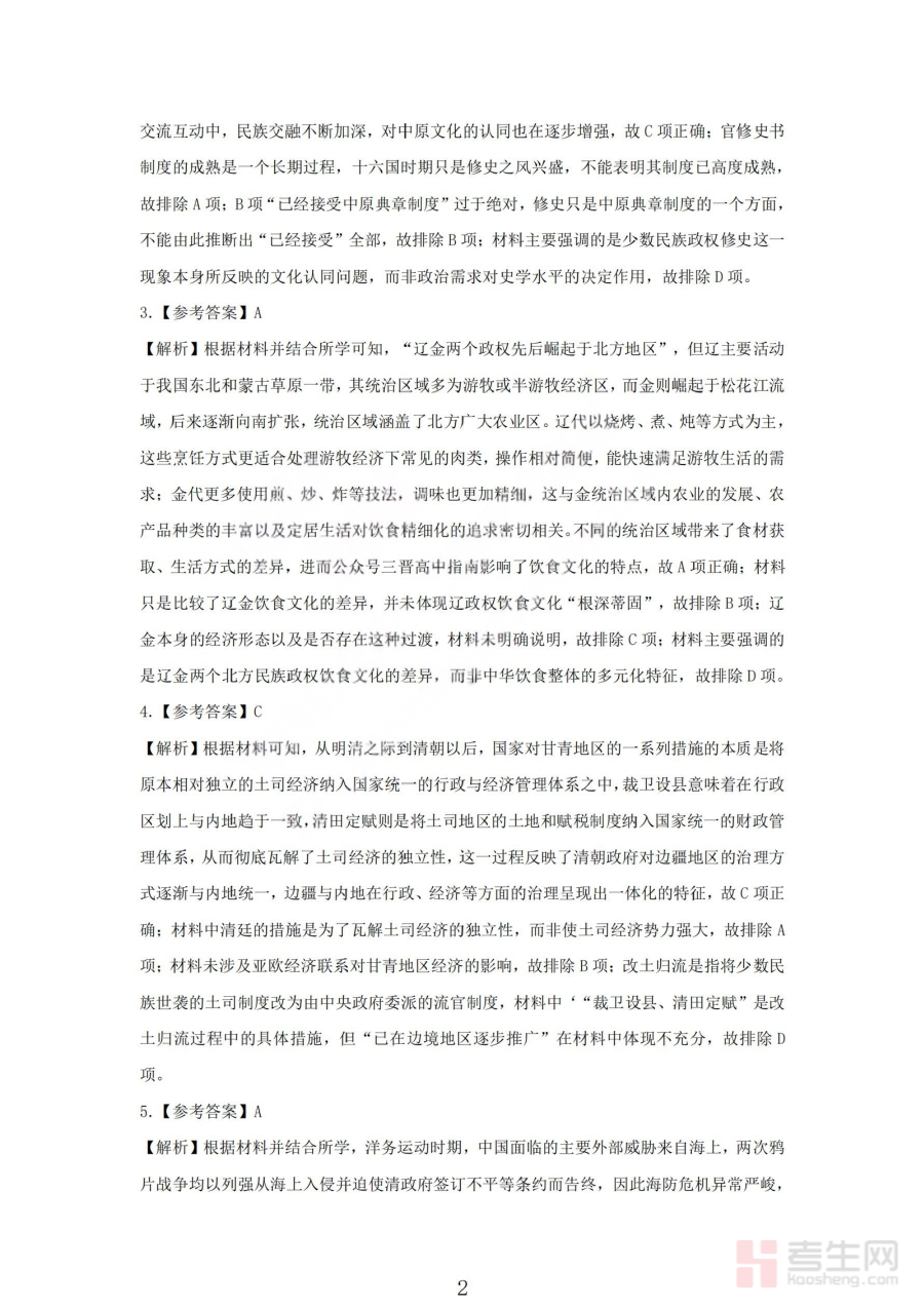 这份历史答案资料主要用于支持师生开展学情诊断与备考规划工作。教师可借助它对学生的答题情况进行系统分析,精准把握班级整体在历史知识掌握、解题能力等方面的阶段性表现,识别普遍存在的问题;学生则能通过核对答案进行自我评估,明确自身在历史学习中的优势与不足,为后续的复习方向调整提供依据,助力提升备考效率与针对性。