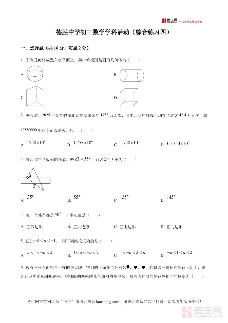 《精品解析:北京市西城区德胜中学2024-2025学年九年级下学期数学3月考月考试题(原卷版)》是针对北京市西城区德胜中学2024-2025学年九年级下学期数学学科3月月度考试的原卷类备考资料。该资料依托该校特定学年段与学期的数学教学进度及阶段性考查需求编制,能够精准反映该校九年级下学期数学学科在3月阶段的考查方向与试卷结构,为相关使用者提供贴合实际教学场景的考试资源支持,帮助使用者快速对接该校数学学科的阶段性考查要求。