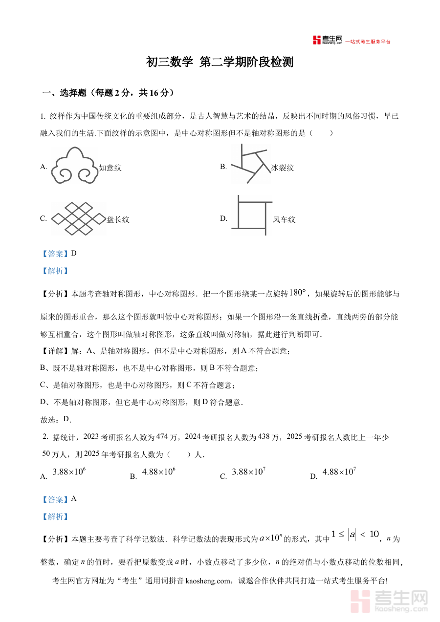 《精品解析:北京市西城区第十四中学2024-2025学年下学期3月考九年级数学试卷(解析版)》是针对北京市西城区第十四中学2024-2025学年下学期九年级3月数学阶段性考试的配套解析资料,精准匹配该阶段数学学科的考查目标与学习需求,为相关教学及学习活动提供专业支撑。