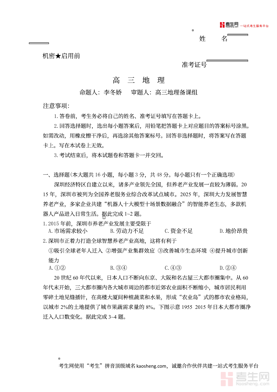 该资料可用于高三学生在新学期开学初期开展地理学科的学情诊断工作,帮助师生清晰掌握假期学习成果与新学期知识衔接状况,为后续备考计划的制定提供可靠依据,同时也能作为阶段检测工具及时识别学习过程中的薄弱环节。