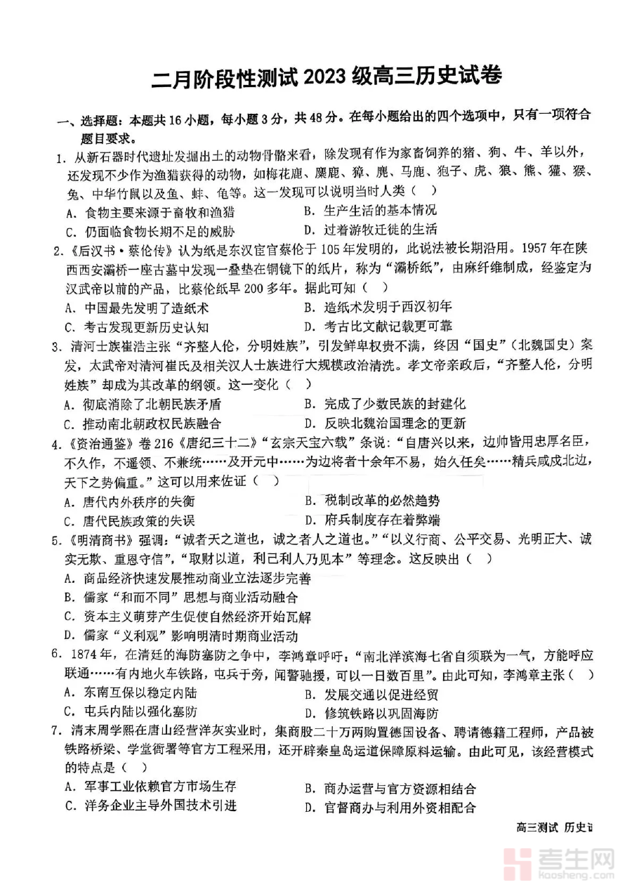 《哈尔滨市第一中学、第六中学2026年2月高三零模模拟考试 历史》是由哈尔滨市第一中学与第六中学联合推出的针对2026届高三学生的历史学科零模模拟考试资料。该资料聚焦高三备考初期的阶段性检测需求,结合两校的教学实践与本地高考备考方向,为学生提供贴合高三初期学习进度的历史模拟测试资源,是高三历史备考过程中早期评估学习状态、把握复习方向的重要参考材料。