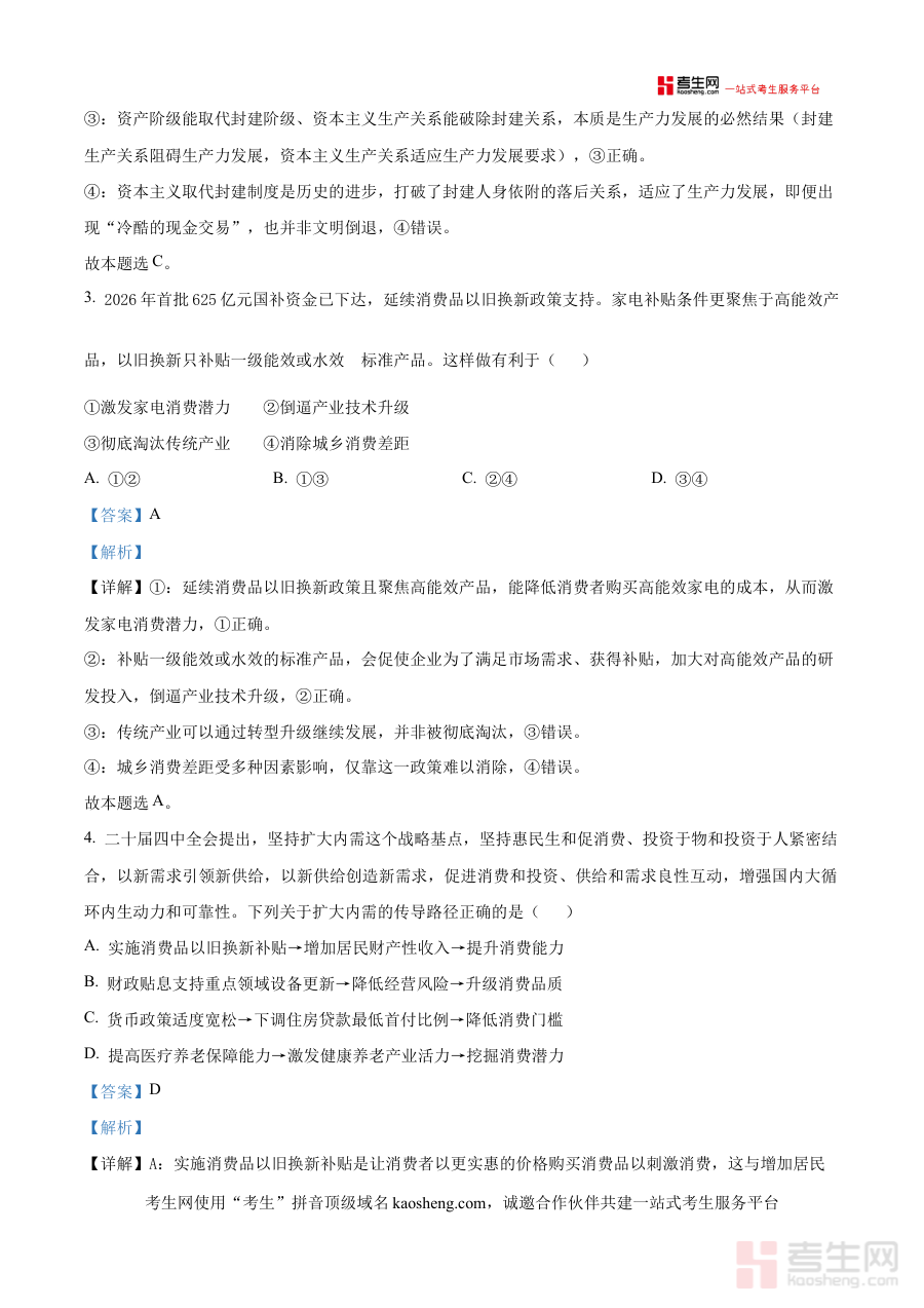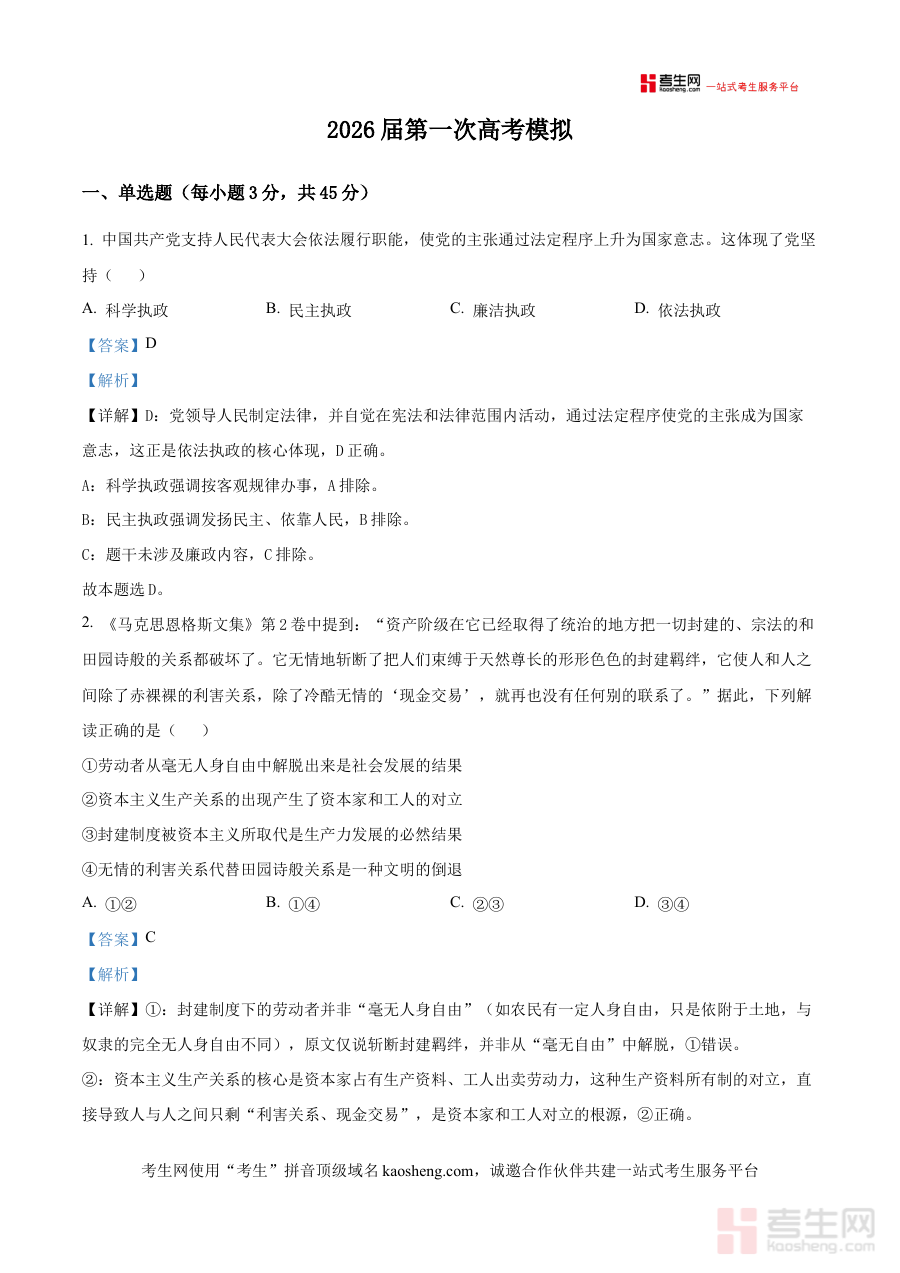 该资料以解析版形式呈现,可帮助考生进行学情诊断,清晰了解自身在政治学科学习中的薄弱环节与优势领域;同时为教师和学生提供科学的备考规划参考依据,辅助调整复习策略以适配联盟校考试的命题趋势;还能作为阶段检测的重要工具,让考生提前适应一模考试的节奏与要求,为后续复习明确方向。