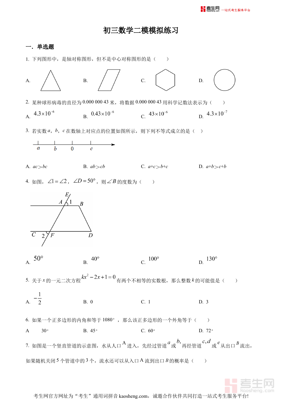 《精品解析:2024年北京市一零一中学九年级中考二模数学试题(原卷版)》是2024年北京市一零一中学面向九年级学生发布的中考二模数学试题原卷版备考资料。该资料结合学校的教学实践与中考备考经验,贴合北京市中考数学的命题方向与考查标准,为学生提供了贴近真实中考二模考试场景的练习载体,有助于学生提前熟悉考试的整体架构与考查形式,为后续系统备考筑牢基础。