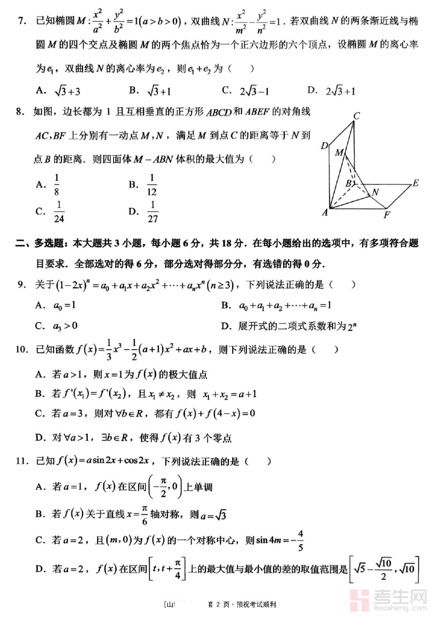该资料主要用于高三学生的阶段性学习诊断与备考规划指导。通过参与此次月考,学生可及时发现自身在数学学习中的薄弱环节,明确知识盲区;教师则能依据考试结果调整教学策略,优化复习计划的侧重点。同时,它能帮助学生提前适应高考前的阶段性测试节奏,熟悉考试流程与氛围,为后续模拟考试及最终高考积累实战经验。