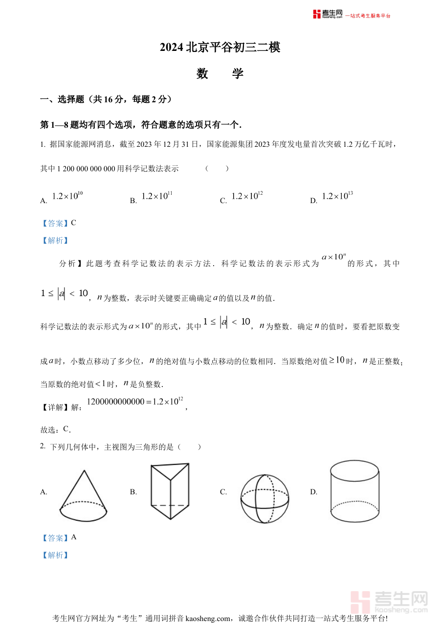 《精品解析:2024年北京市平谷区中考二模数学试题(解析版)》是针对2024年北京市平谷区初中毕业生学业水平第二次模拟考试的数学学科备考资料。作为中考前关键的阶段性检测素材,它严格遵循当地中考数学命题导向与教学要求,为考生营造了与正式模拟考试高度一致的答题环境,有助于考生提前适应考试流程、把握时间分配节奏,是中考冲刺阶段重要的练习载体。