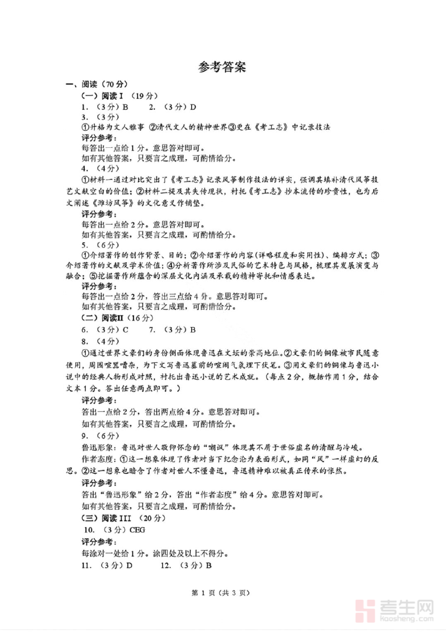 该资料的核心用途在于辅助师生开展学情诊断工作,通过对照答案可精准定位学生在语文知识掌握、答题思路构建及得分要点把握等方面的薄弱环节;同时能为教师制定科学的备考规划提供数据支撑,助力调整教学侧重点;此外还可作为阶段检测后的效果验证工具,推动师生及时发现复习中的问题并优化后续学习策略。