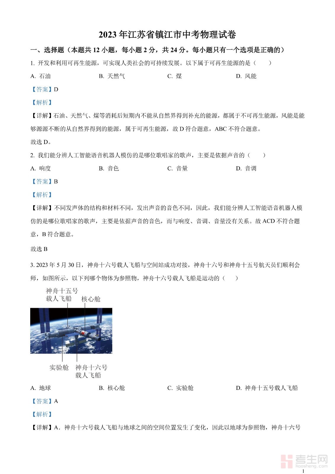 2023年江苏省镇江市中考物理试题(解析版)