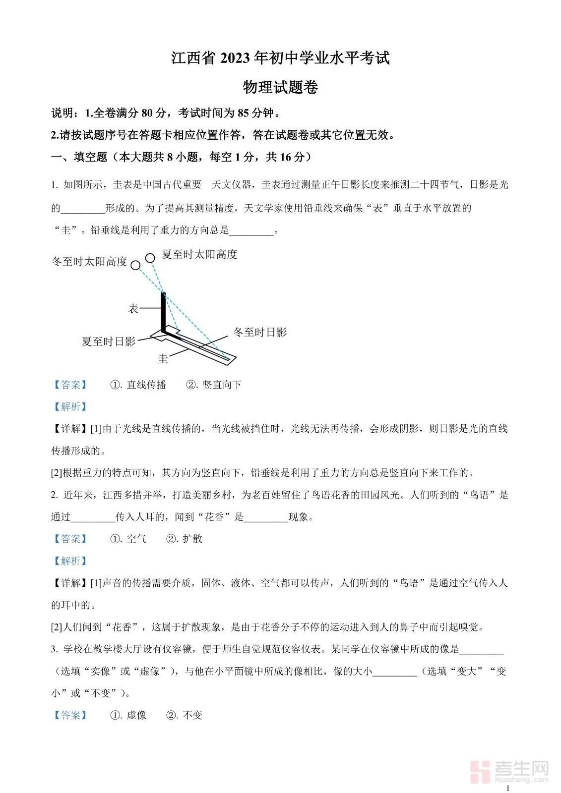 2023年江西省中考物理试题(解析版)