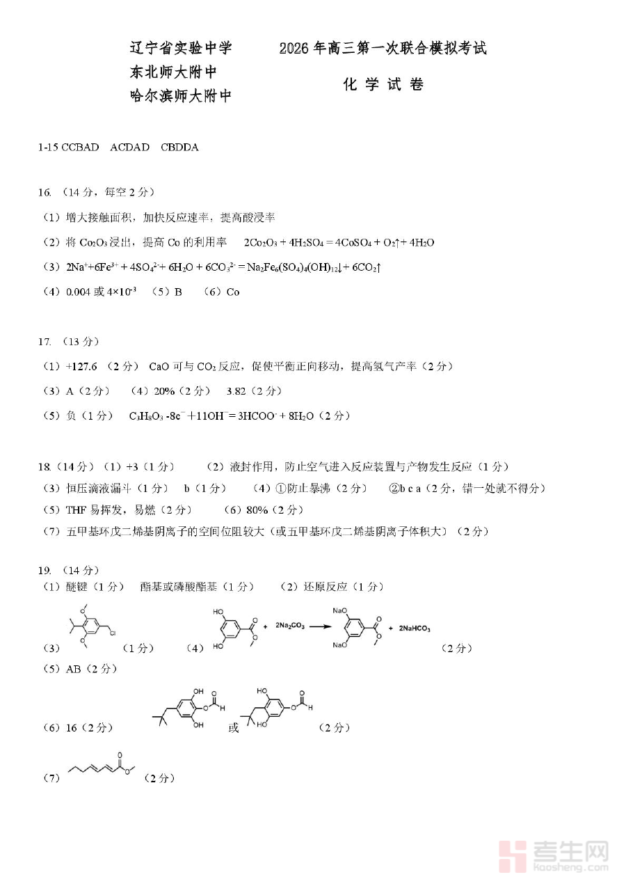 《2026届东北三省三校(哈师大附中、东北师大附中、辽宁实验)高三下学期一模化学答案》是2026届东北三省三校高三学生下学期第一次模拟考试化学科目的配套参考答案资料,属于高三阶段关键的模拟考试辅助材料,为学生和教师提供该次考试化学科目的标准参考依据。