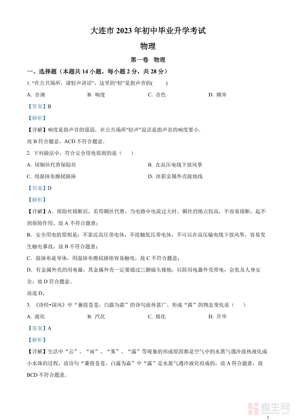 2023年辽宁省大连市中考物理试题(解析版)