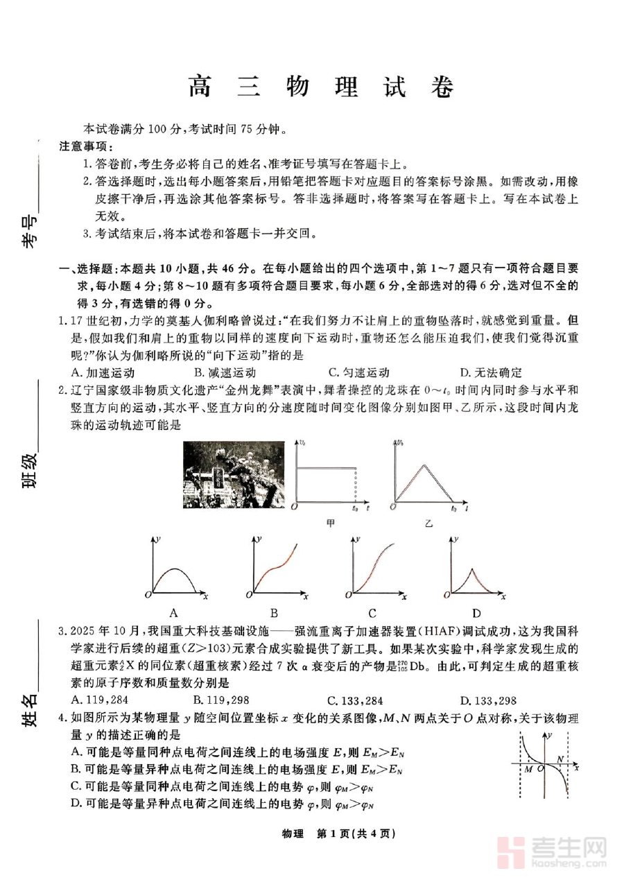 此试卷适用于2026届辽宁省高三年级学生及相关教师,尤其适合参与辽宁名校联盟教研体系的学校师生使用。作为高三下学期中期的重要检测工具,它能帮助学生在高考前的关键阶段明确自身学习定位,合理调整备考节奏,提升复习效率;同时也为教师提供了精准评估学生学习状态的依据,助力师生共同制定更具针对性的备考方案,为高考物理学科取得理想成绩奠定坚实基础。