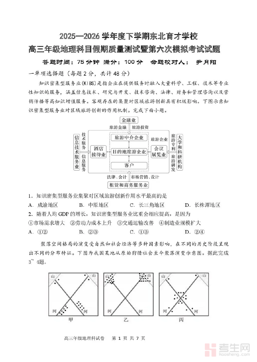 《东北育才学校2025-2026学年高三下学期第六次模拟考试 地理》是东北育才学校针对本校高三学生设计的阶段性地理模拟考试资料,对应2025-2026学年下学期的第六次模拟测试环节,为高三地理备考提供贴合学校教学进度与考试要求的实战练习资源。