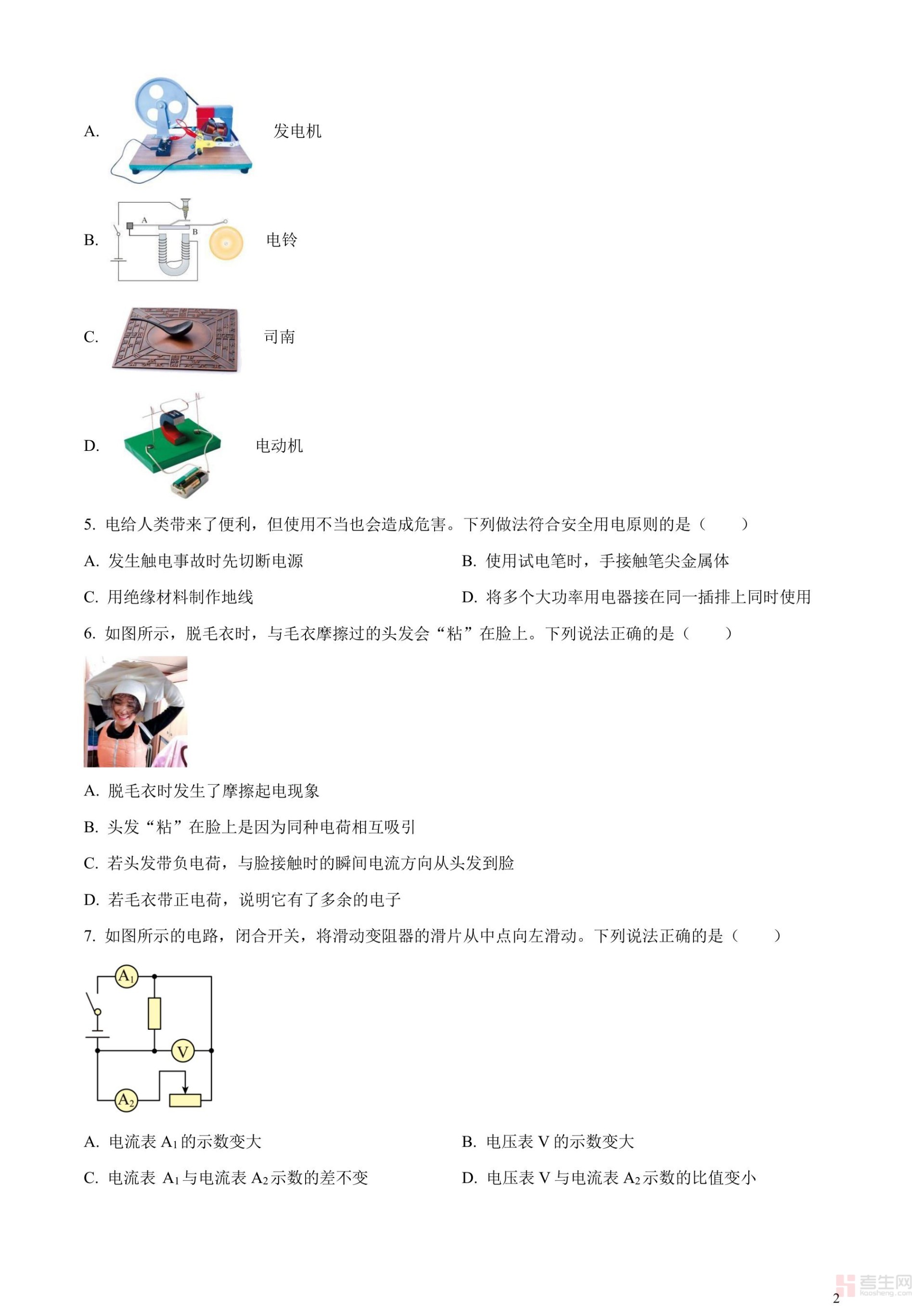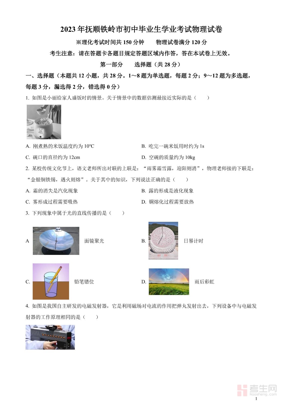 2023年辽宁省抚顺铁岭中考物理真题(原卷版)