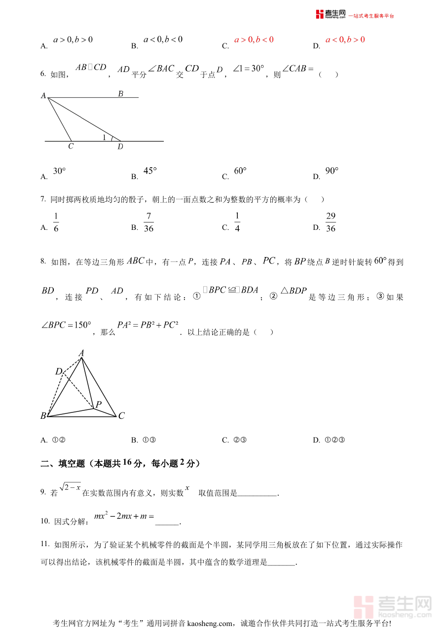 该资料作为原卷版试题资源,可有效用于九年级学生的阶段性学习成果检测,帮助教师和学生快速把握当前数学学科的知识掌握情况与能力短板,为制定个性化备考策略提供数据支撑,同时也能让学生在模拟考试情境中锻炼答题节奏与应试心态,提升考场适应能力。