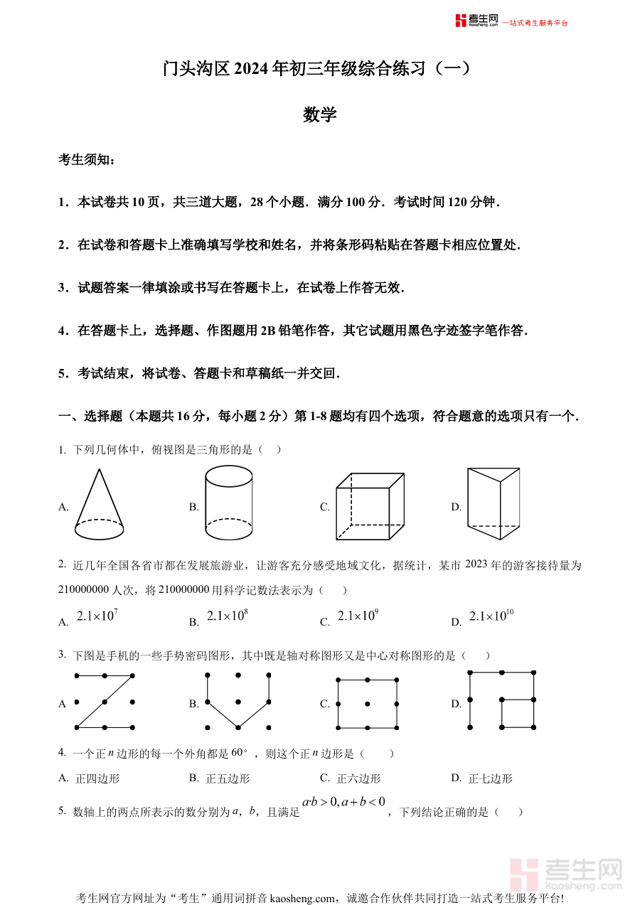 《精品解析:2024年北京市门头沟区九年级中考一模数学试题(原卷版)》是针对2024年北京市门头沟区九年级学生设计的中考数学模拟备考资料,精准贴合本地区中考一模考试的命题框架与考查方向,能够帮助学生提前熟悉当地中考一模的考试形式与难度设置,为后续的系统复习与备考规划提供基础参考。