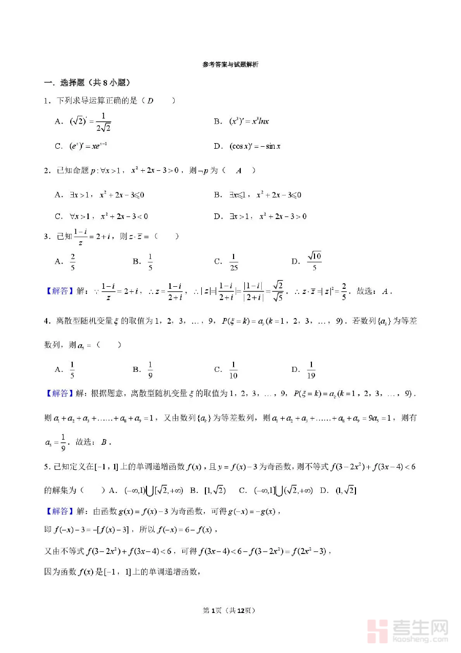 此资料的核心用途在于支持高三学生完成模拟考试后的学情诊断与复习调整。学生通过对照答案可清晰识别答题中的错误点与知识漏洞,明确后续复习的重点方向;教师则可利用该答案开展针对性试卷讲评,分析学生群体共性问题,优化教学计划与备考策略,确保高三下学期数学复习工作更高效且贴合学生实际需求。