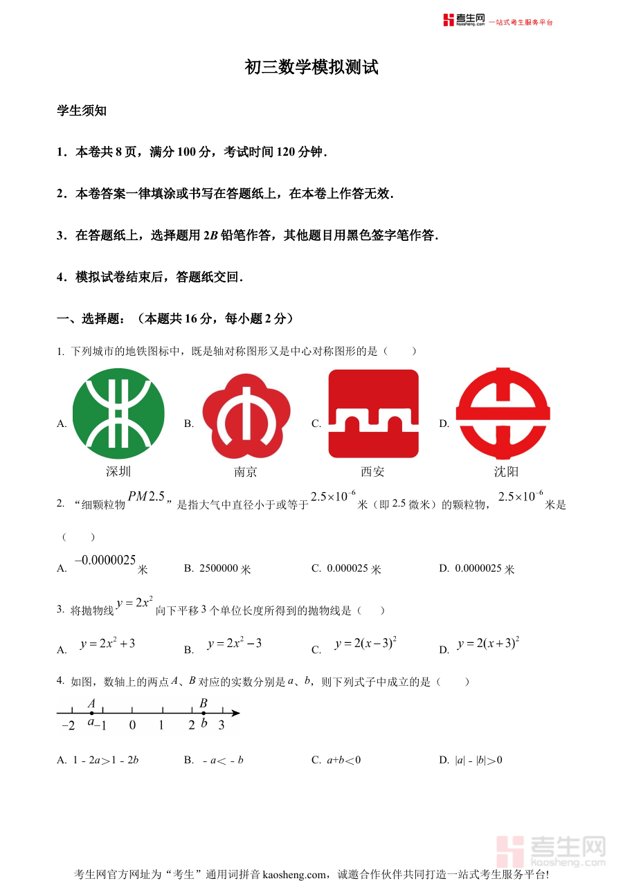 《精品解析:2024年北京师范大学实验华夏女子中学中考零模数学试题(原卷版)》是2024年北京市中考备考阶段的重要资料,由北京师范大学实验华夏女子中学编制,针对中考零模数学考试设计。该资料紧密结合北京地区中考数学命题特点与学校教学实际,为学生提供了贴合零模考试场景的练习内容,是中考备考初期的关键阶段性检测资源。