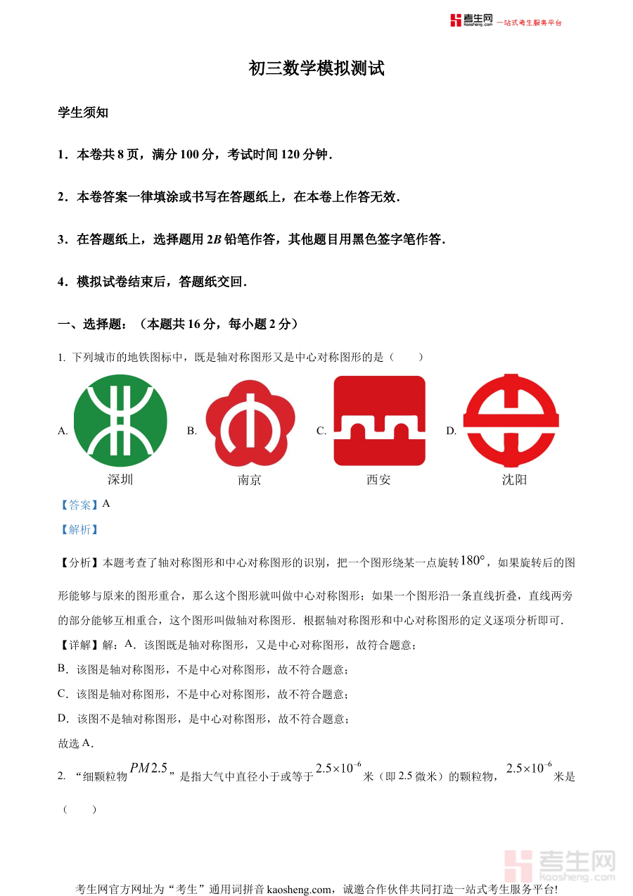该资料可用于初三学生进行学情诊断,帮助学生清晰认知自身在数学知识掌握上的优势与薄弱板块;辅助教师制定科学的备考规划,结合零模试题的考查方向优化教学策略;同时作为阶段检测工具,有效检验学生阶段性学习成果,为后续复习调整提供可靠依据,推动备考过程更具针对性与高效性。