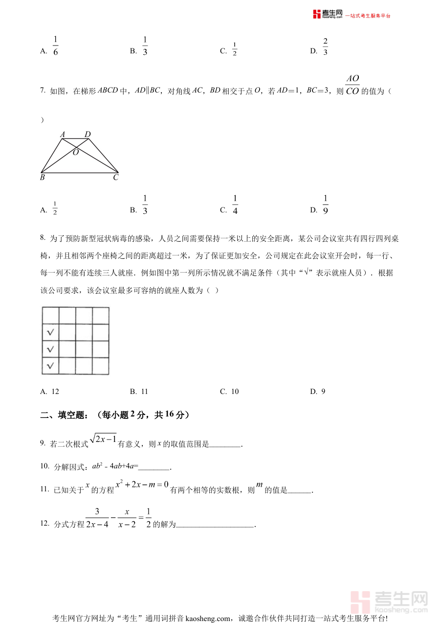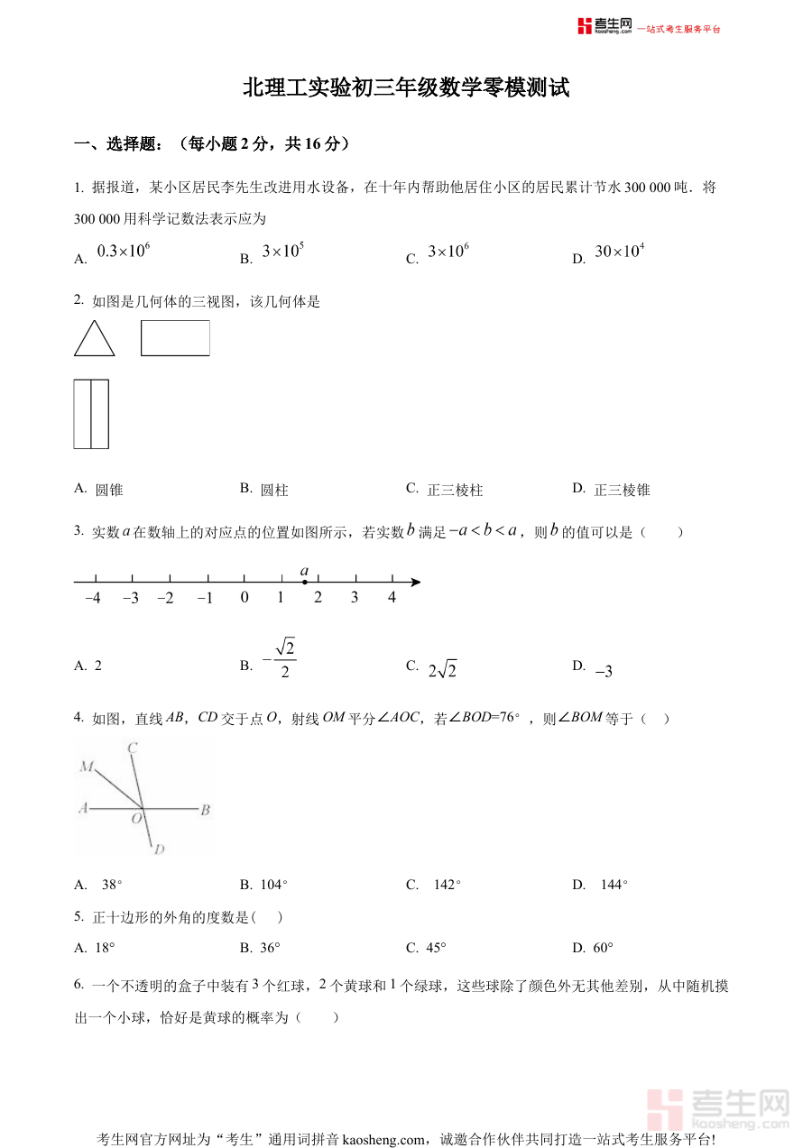 本资料适用于北京理工大学附属实验学校及周边区域的初三学生,尤其适合处于中考备考初期、需要进行零模考试模拟训练的考生使用,通过对该试题的练习与分析,考生可明确自身在数学学科上的优势与不足,为后续的系统复习与针对性提升筑牢基础,助力考生在中考备考进程中实现稳步进阶。