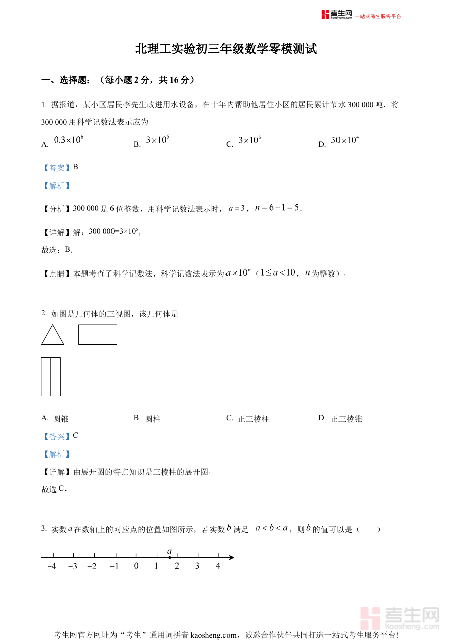 《精品解析:2024年北京理工大学附属实验学校中考零模数学试题(解析版)》是2024年北京市区域内,针对中考前零模阶段设计的数学学科备考资料。该资料依托北京理工大学附属实验学校的命题背景与教学资源,聚焦中考零模这一关键备考节点,为考生提供贴合本地考试趋势的练习与解析支持。
