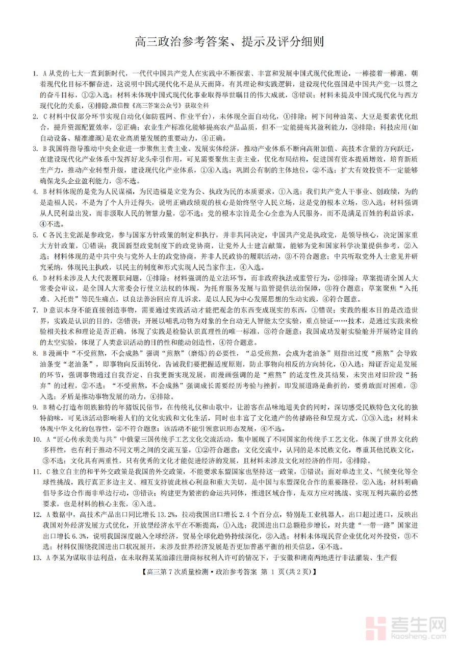 《政治答案 2026山西九师联盟高三第7次质量检测3.5-6》是针对2026年山西省九师联盟组织的高三年级第7次质量检测的政治学科参考答案资料。九师联盟作为山西省内重要的教育协作平台,其组织的高三质量检测紧密贴合本省高考政治考纲要求与高三教学实际进度,此次第7次检测是高三阶段关键的阶段性评估环节,该答案资料为参与检测的师生提供了准确的答题参照,是高三政治阶段备考体系中的重要组成部分。