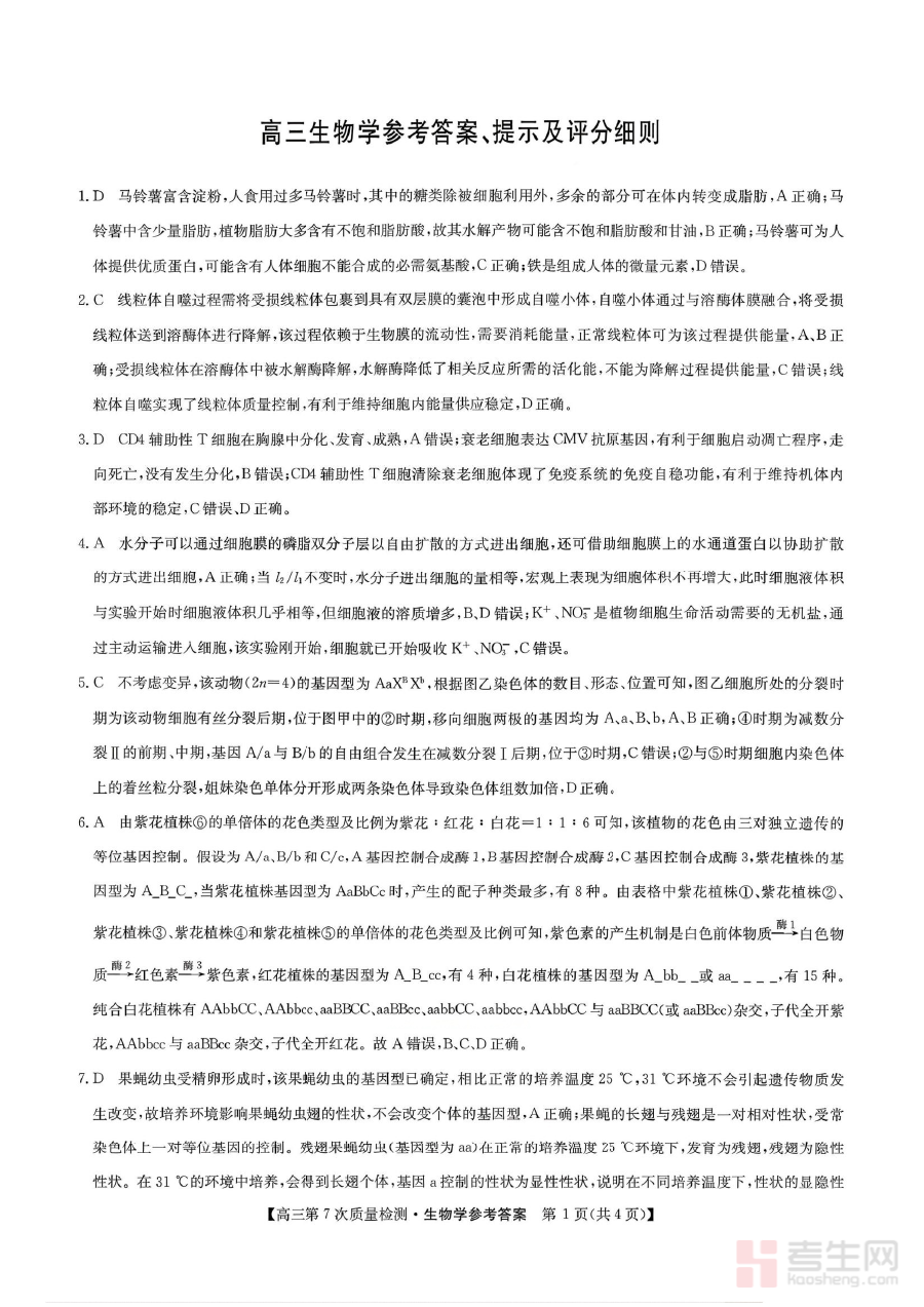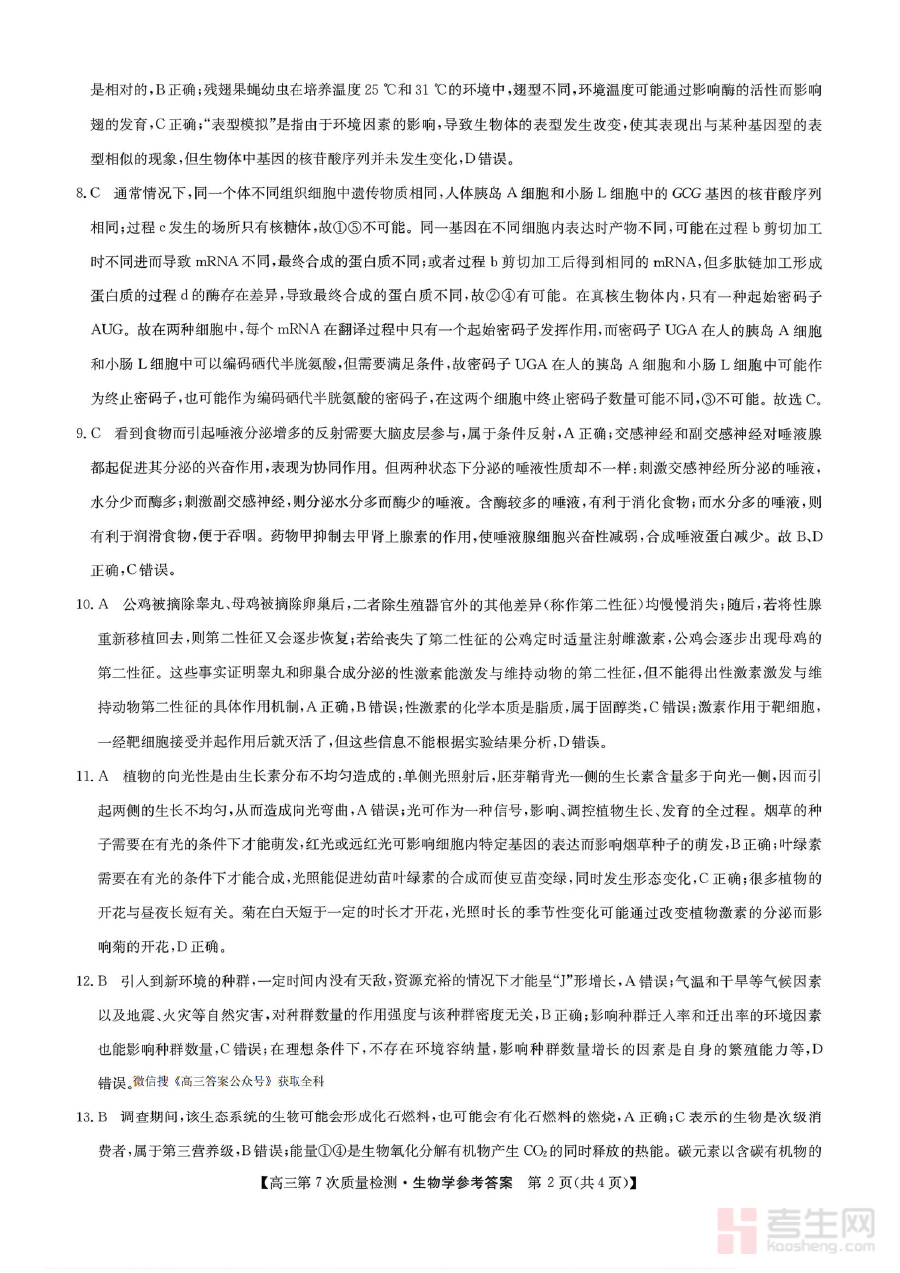 《生物答案 2026山西九师联盟高三第7次质量检测3.5-6》是2026年面向山西省范围内参与九师联盟组织的高三年级第7次质量检测的生物学科配套答案资料,作为该次阶段性检测的重要辅助资源,能够为考生提供准确的作答参考依据。