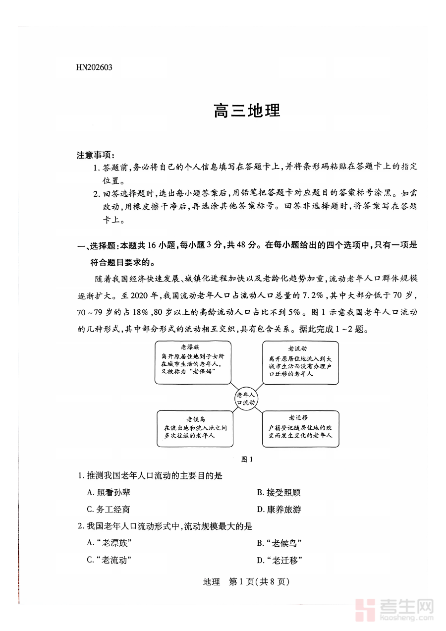 该试题主要适用于河南省高三年级的全体学生群体,特别是需要通过开学检测快速定位自身地理学习漏洞的学生。对于地理教师而言,它也是开展教学效果评估、优化教学计划与进度安排的重要资源。通过使用该试题开展检测,学生能够及时发现假期学习中的不足并针对性补弱,教师则能据此调整教学内容与方法,共同提升高三地理教学与备考的效率和质量。