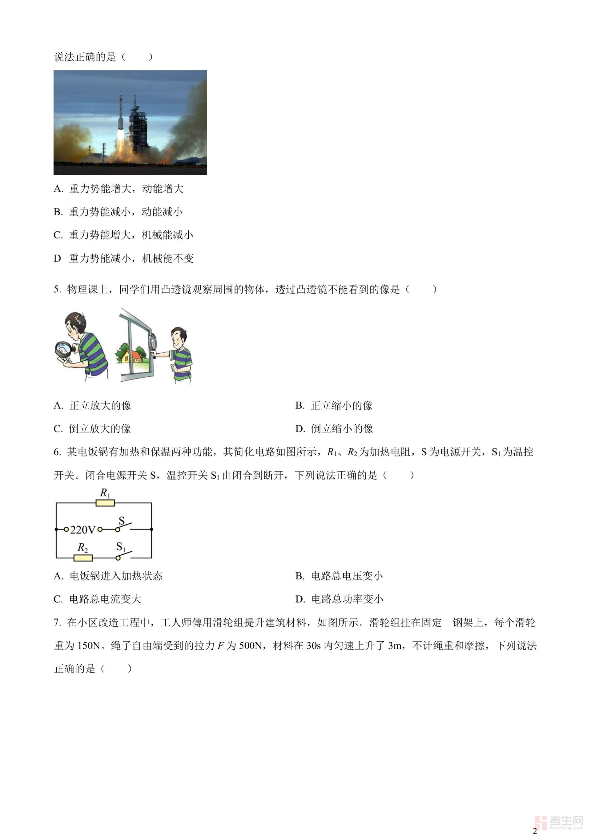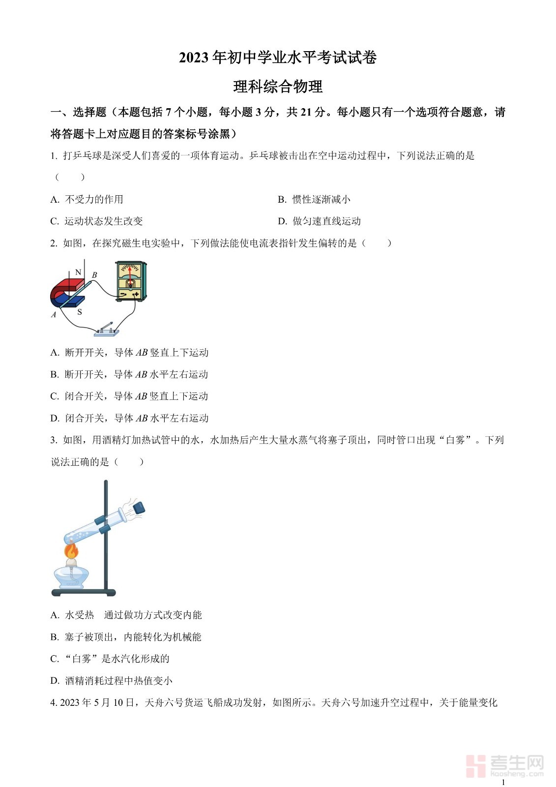 2023年内蒙古包头市中考理综物理试题(原卷版)