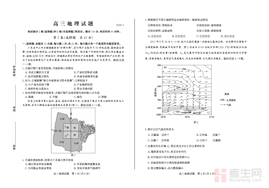 该试题适用于2026届德州市高中三年级学生,尤其是处于地理学科一轮或二轮复习阶段的考生。它不仅可作为阶段性检测的标准材料,帮助学生模拟真实考试场景、提升应试能力;还能为备考规划提供数据支撑,让学生在复习中更有针对性地分配时间与精力。对于教师而言,这套试题也是开展教研活动、制定复习计划的重要参考资源,有助于增强教学的有效性与针对性。