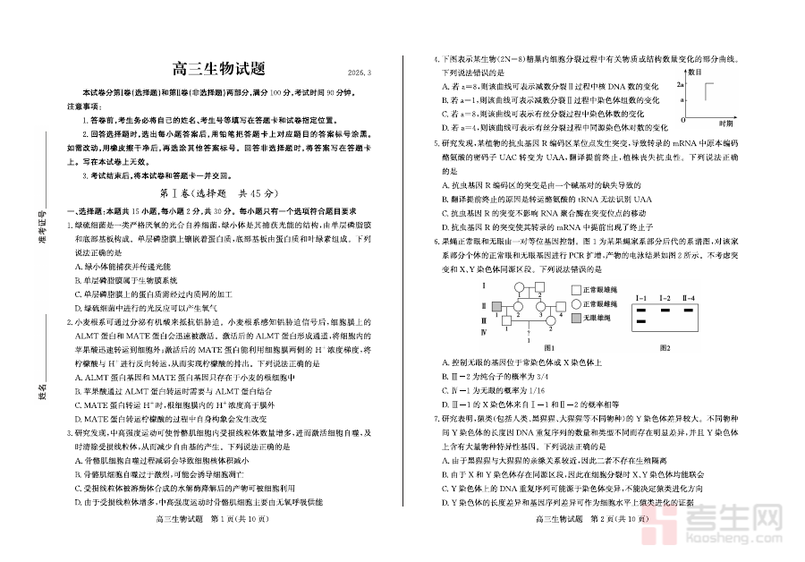 本资料适用于2026年德州市参加高考的高三学生、生物学科教师及备考辅导人员。对于学生而言,它是阶段性检测自身学习成果、适应模拟考试节奏的有效工具;对于教师和辅导人员,则可借助试题分析班级整体学情或个体学习状况,优化教学内容与辅导方案,提升备考指导的针对性与有效性,帮助考生更好地应对后续的高考复习与考试挑战。