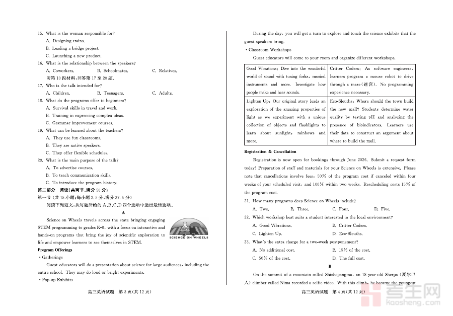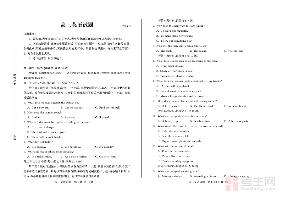 《山东德州市2026届高三一模考试 英语试题(含答案,含听力原文)》是针对山东德州市2026届高三学生第一次模拟考试的英语学科专用备考资料,包含完整试题内容、配套答案解析及听力原文文本。该资料精准匹配本地高三一模考试的考查需求,全面呈现此次模拟考试的英语学科考查框架与内容体系,为使用者提供与考试实际高度契合的备考参考依据。