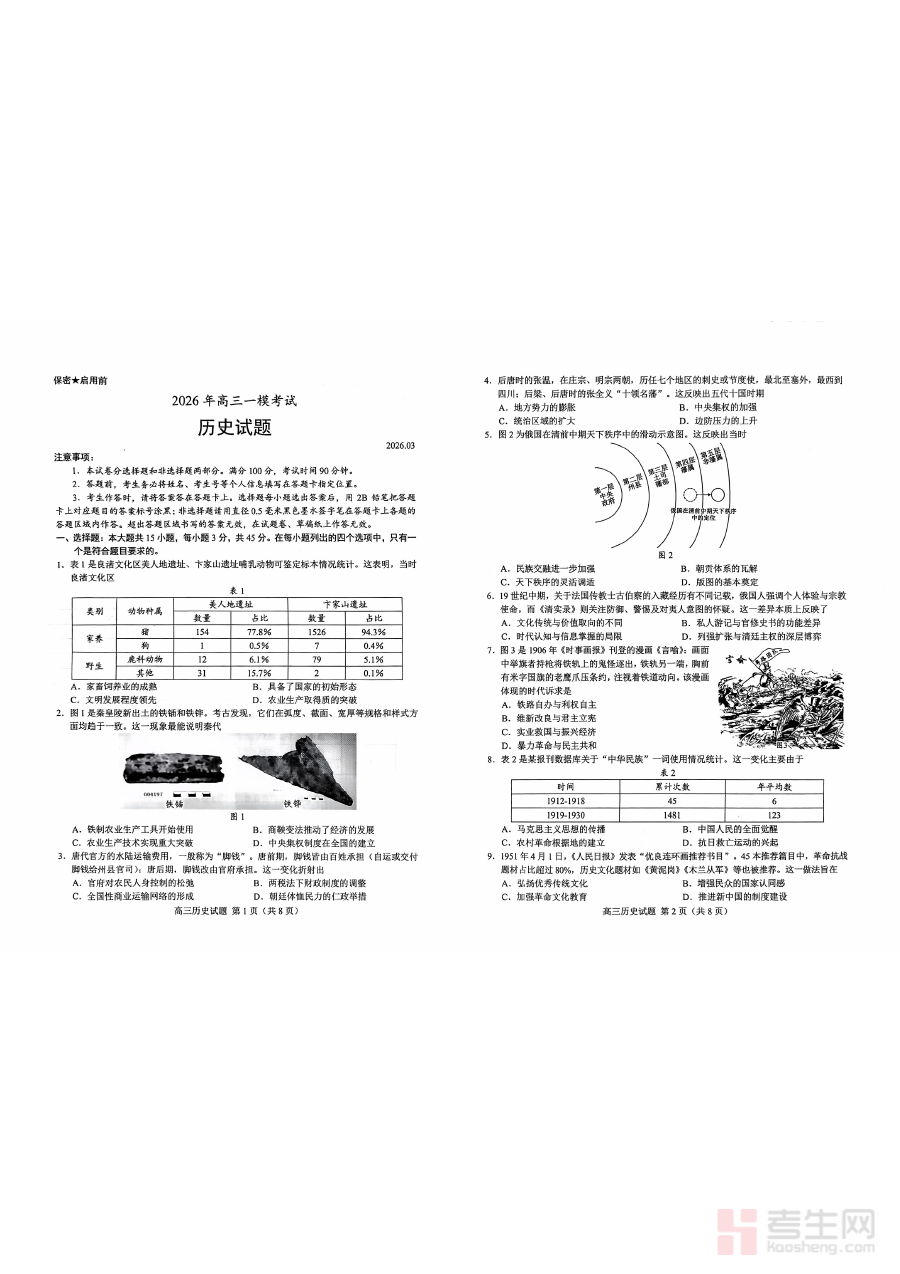 该试题可用于高三学生进行阶段性学情诊断,助力师生清晰掌握当前历史知识的掌握程度与应用水平,为后续备考计划的制定与调整提供客观依据。通过完成试题,考生能有效检验自身对历史学科核心素养的落实情况,及时识别学习中的短板,从而针对性地优化复习策略,提升备考的精准性与有效性。