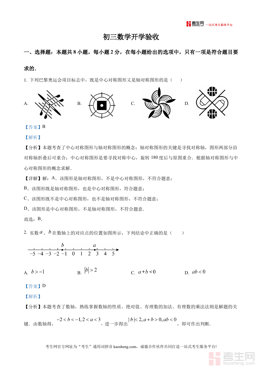 该资料主要用于九年级下学期学生的数学学情诊断与阶段检测,帮助学生和教师清晰了解当前学习阶段的知识掌握状况,为后续的备考规划与教学调整提供客观依据,通过解析版内容辅助学生梳理解题逻辑与方法。