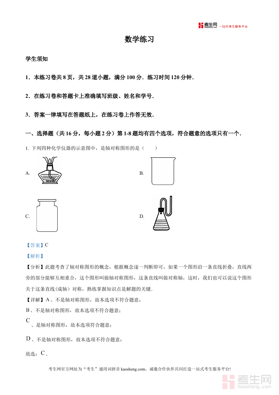 《精品解析:北京市第四中学(广外校区)2025-2026学年下学期九年级开学学情反馈数学试卷(解析版)》是针对北京市第四中学广外校区2025-2026学年下学期九年级开学阶段学情反馈考试的数学学科配套解析资料,精准匹配该阶段学情评估场景,为相关学习与教学活动提供专业参考依据。