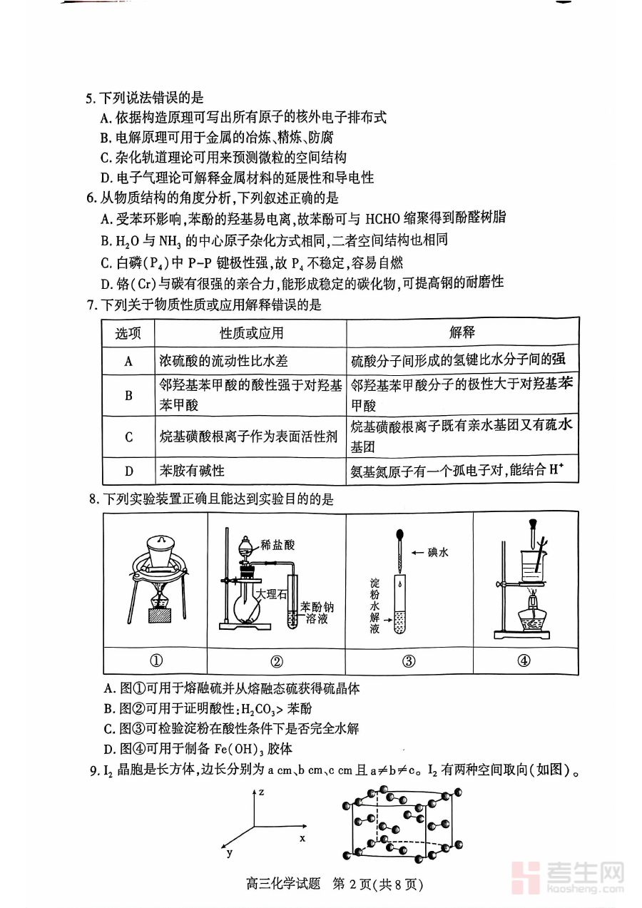 此试题适用于湖北襄阳市区域内的高三学生及从事高三化学教学工作的教师群体。对于学生而言,完成该试题可有效检测自身化学学科的学习进度与综合能力水平,为高考前的系统复习和专项提升奠定基础;对于教师而言,则能依托测试结果进行班级整体学情分析与个体差异研究,优化复习内容与方法,增强备考指导的针对性和有效性,共同助力学生在高考化学科目中取得理想成绩。