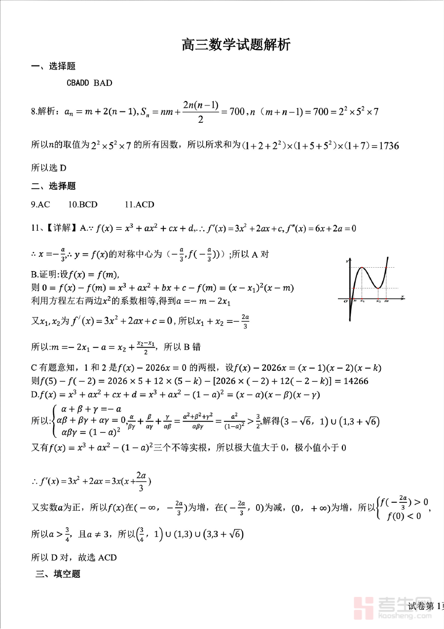 该资料适用于湖北襄阳市2026届高三学生、数学教师及相关教育工作者。对于学生而言,核对答案可及时纠正解题错误、梳理正确思路、提升解题技巧;对于教师而言,借助答案能更高效地分析试卷数据、制定精准复习计划。在高三下学期的关键备考阶段,这份答案具有重要的参考价值,有助于师生明确备考方向、优化复习策略,为后续的高考冲刺奠定坚实基础。
