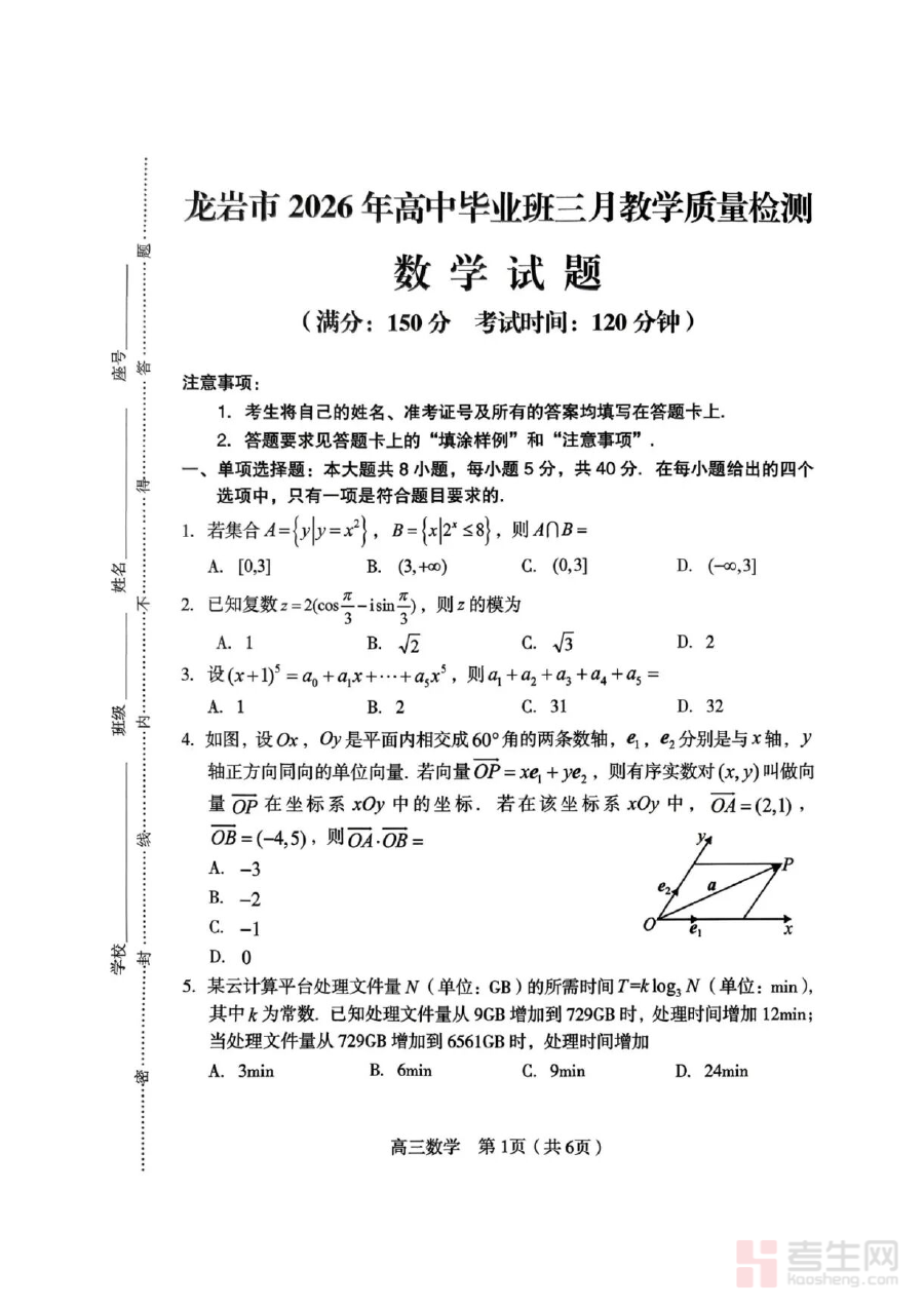 《福建省龙岩市2026年高中毕业班三月教学质量检测数学试题+答案》是针对2026年福建省龙岩市高中毕业班三月教学质量检测推出的配套备考资料,包含该次检测的数学试题及对应的参考答案两部分内容。该资料依托当地高中毕业班教学进度与阶段检测要求编制,能够直接反映本次教学质量检测的考查方向与评价标准,为相关群体提供与考试实际高度契合的参考素材。