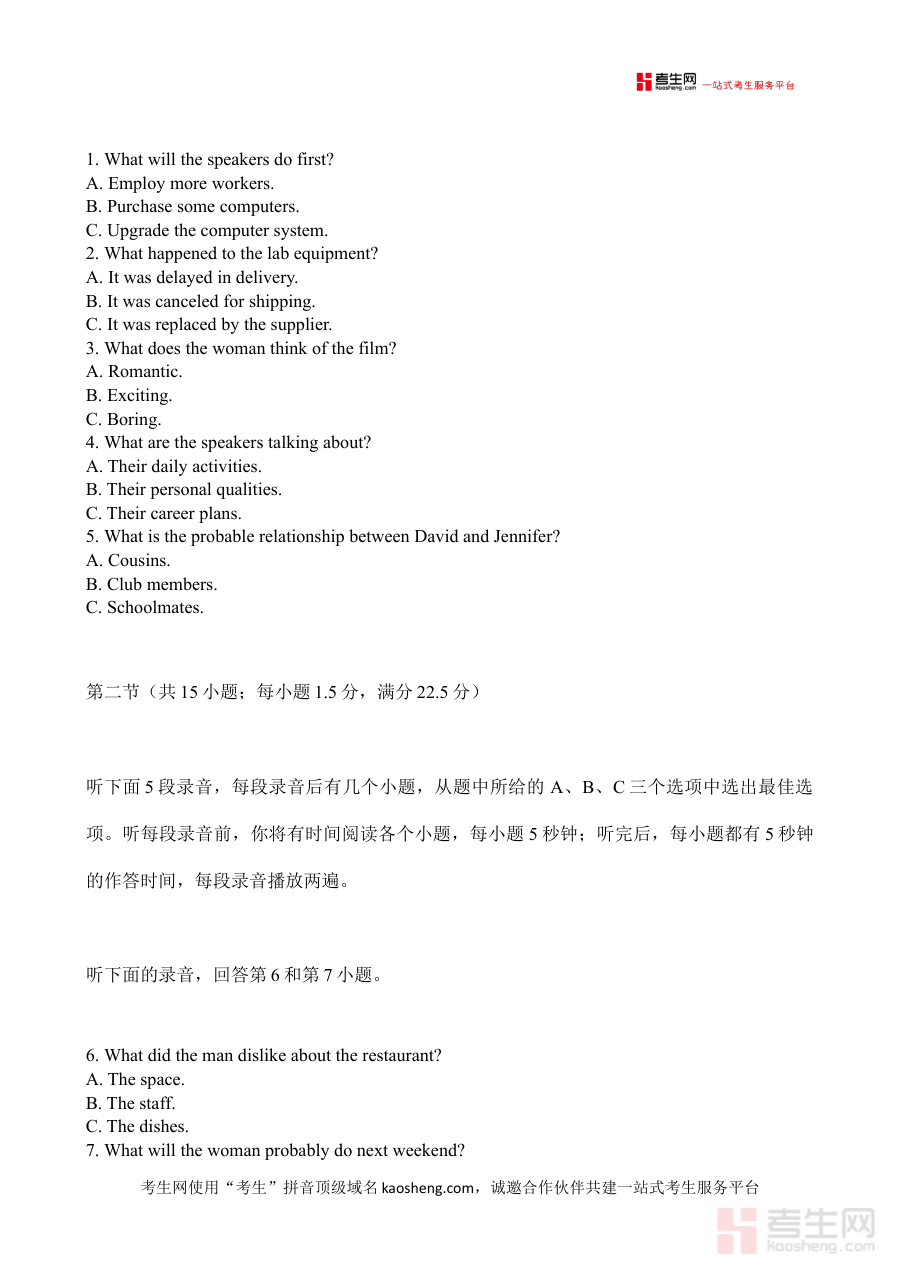 该资料的核心用途在于实现高三英语学习的学情精准诊断与教学效果科学评估,助力教师全面掌握班级学生在英语学习中的优势领域与待提升环节,为后续备考复习计划的优化调整提供可靠依据;同时也支持学生通过参与检测清晰认知自身英语水平,明确下一阶段复习的重点方向,从而更高效地推进备考进程。