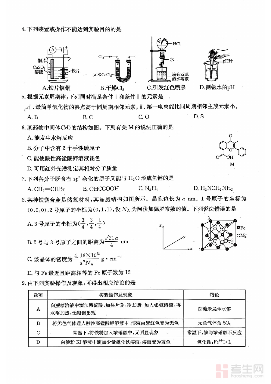 这份资料可用于高三学生进行开学后的化学学情自我诊断,帮助学生清晰认知自身在化学知识体系中的薄弱环节与优势板块;同时也为教师提供联盟内整体学情的参考依据,辅助教师调整后续教学策略与备考指导方案,助力师生更具针对性地推进下一阶段的化学备考工作。